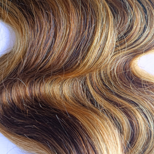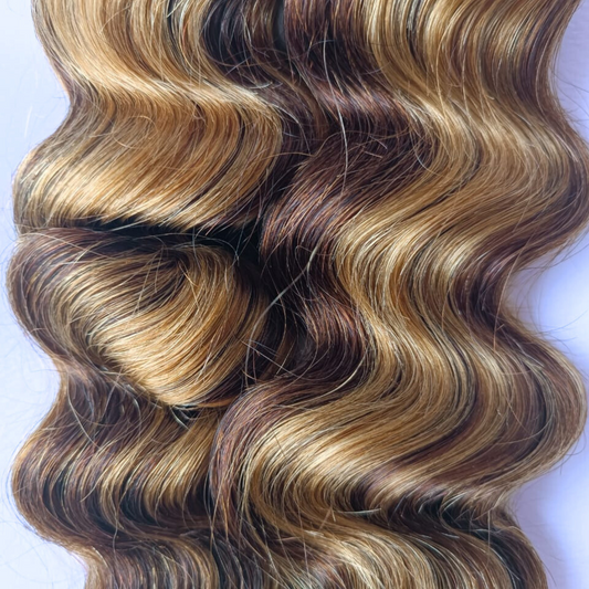 Dark Brown with Honey Blonde Highlights Body Wave Hair Bundle - 100% Human Hair